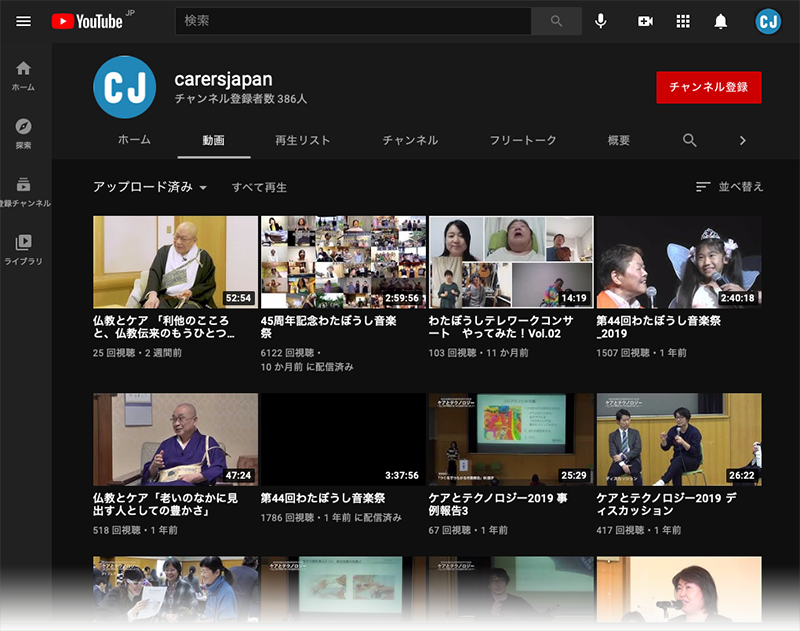 配信動画は、Youtube「caresjapan」でご覧いただけます。お手数おかけいたしますが、以下のURLよりご覧ください。 Youtube「caresjapan」 https://www.youtube.com/user/carersjapan/videos